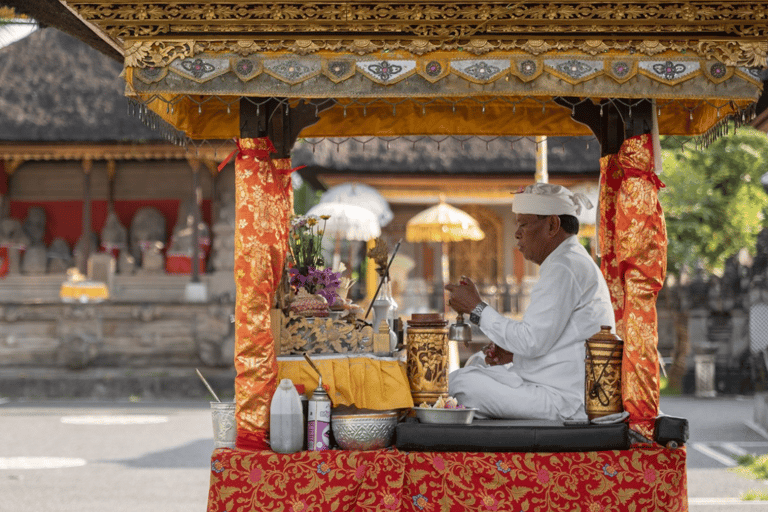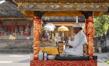 Priest of Pura Pusering Jagat leading a small ceremony during the Tumpek Landep day.